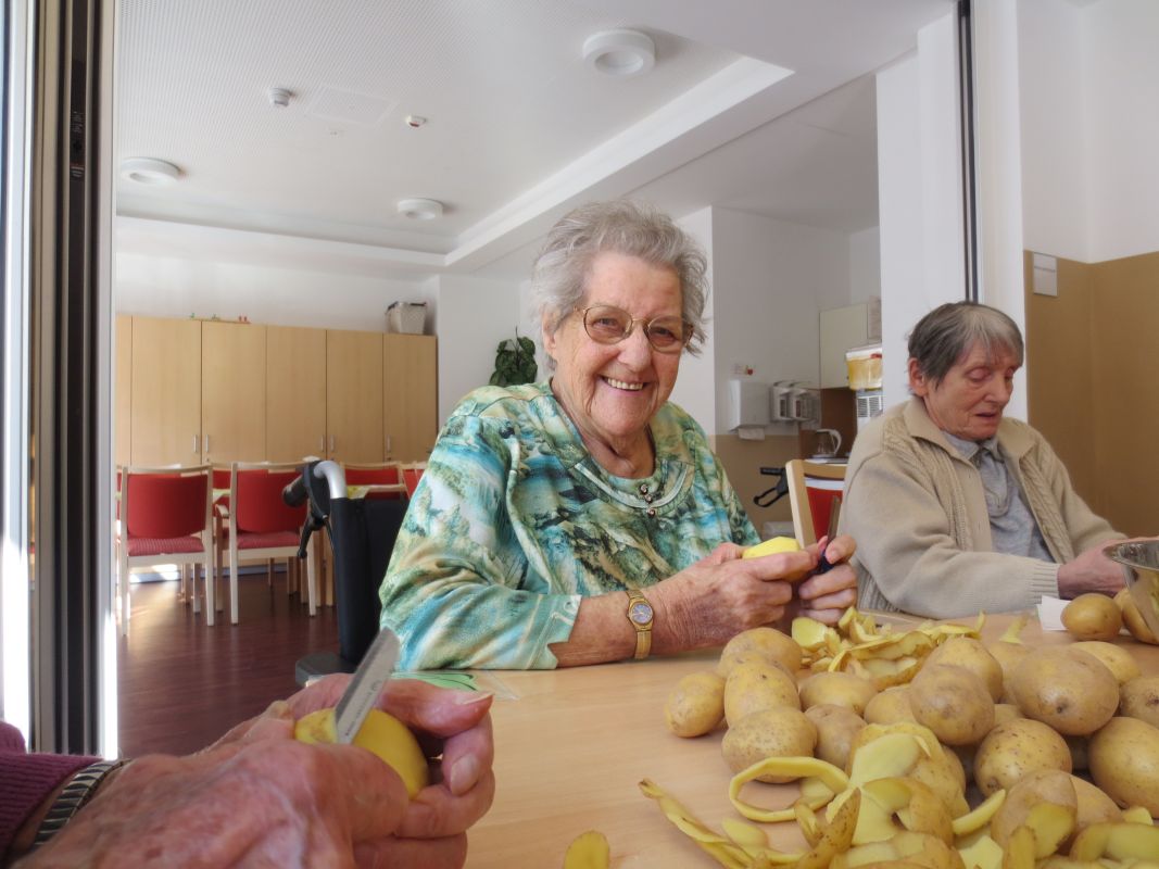 06. April 2019 Egal ob beim Kartoffeln schälen oder Wäsche legen, unsere Bewohner sind mit großer Begeisterung dabei.