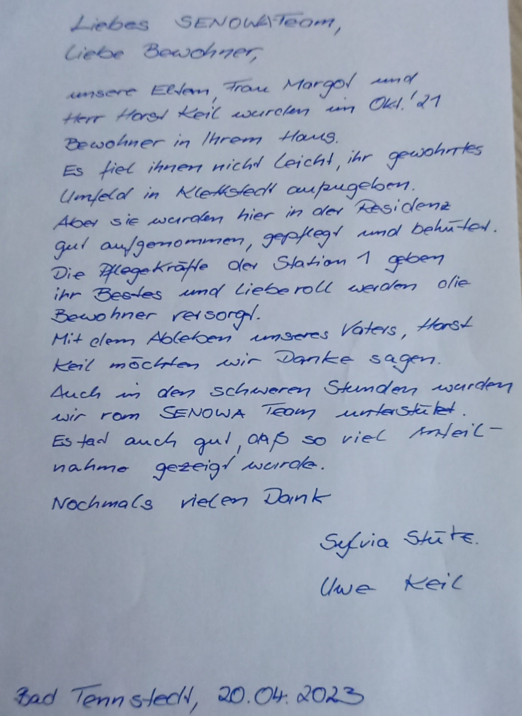 Liebe Bewohnerinnen und Bewohner, liebe Angehörige, liebe Gäste und Partner,